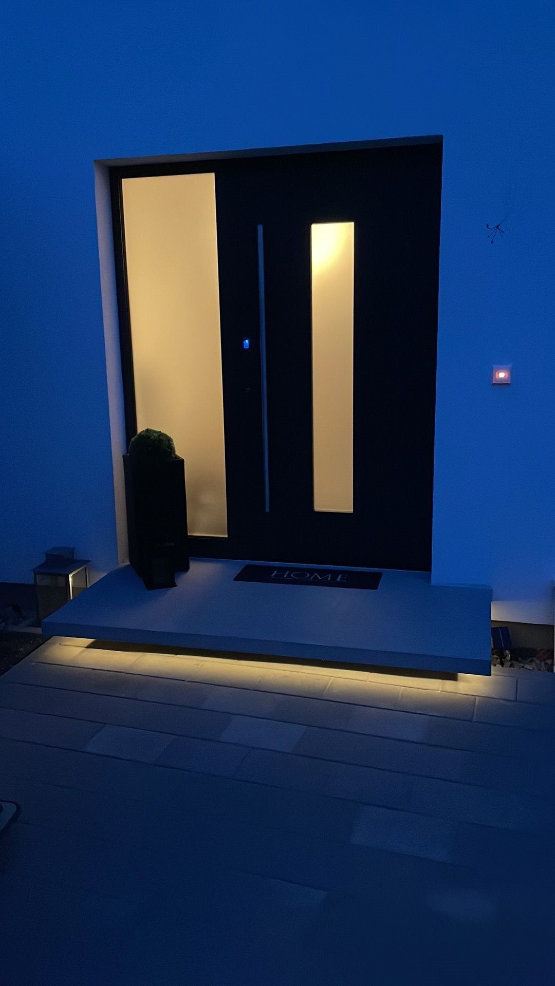 #jp #jppflasterbau #pfadischpflasterbau #josefpfadischpflasterbau #stufe #schwebendestufe #licht #lichtimgarten #galabau #einfahrt #eingangsbereich #eingang #haustüre #haustür