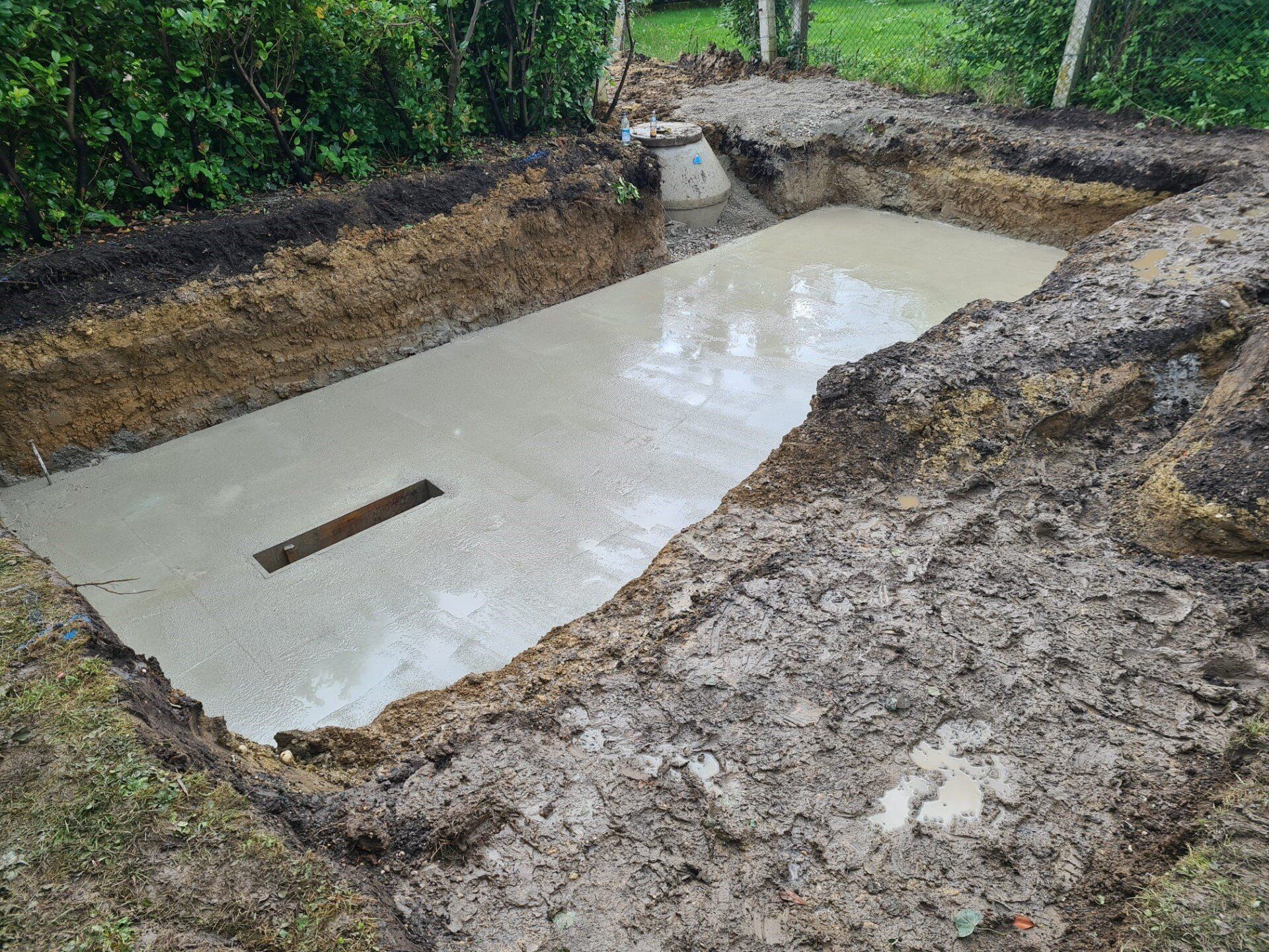 Poolaushub, Bodenplatte für Pool, Poolhinterfüllung,, Randgestaltung für Poolanlage, Rohrleitungsgräben für Gartenbewässerung, Feinsteinzeug, einfassungen, Betonpflaster, Palisaden, Rollrasen und die Vorbereitung der Pflanzflächen.